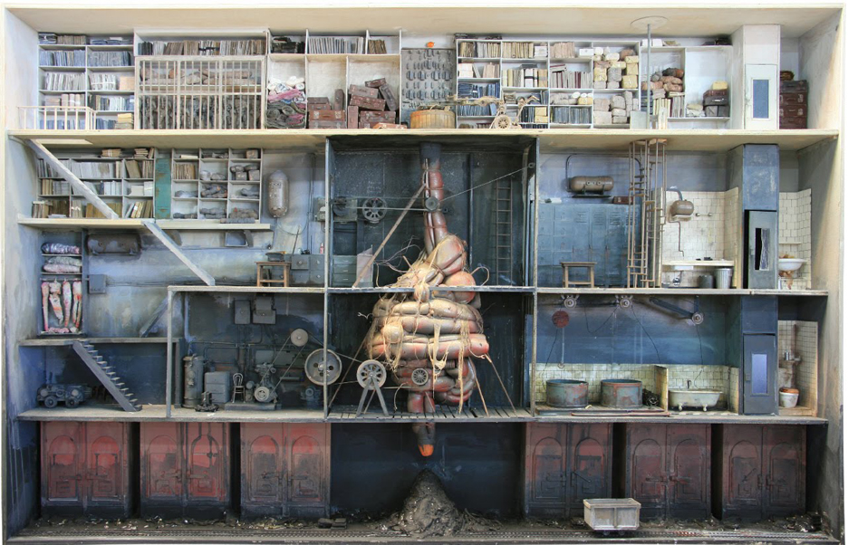 Realizadas con minuciosidad artesana. cada una de las instalaciones que forman la serie Créations numériques nos sumerge en un universo donde la atmósfera gótica y las referencias al surrealismo literario de Kafka, y el laberinto infinito de libros de Borges, convirtiendo al espectador en un clon mas del escenario donde se desarrolla la trama. Cuadros dentro de cuadros, una y mil historias en una narración de cuento que se desarrolla entre cajas de carton.